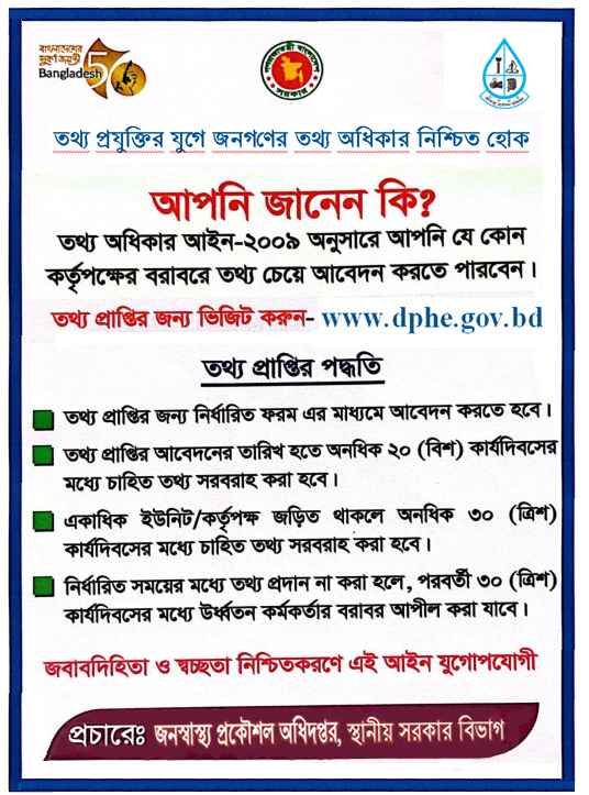 ** জনস্বাস্থ্য প্রকৌশল অধিদপ্তরের স্বপ্রণোদিতভাবে প্রকাশযোগ্য তথ্যের তালিকা ও প্রকাশের মাধ্যম