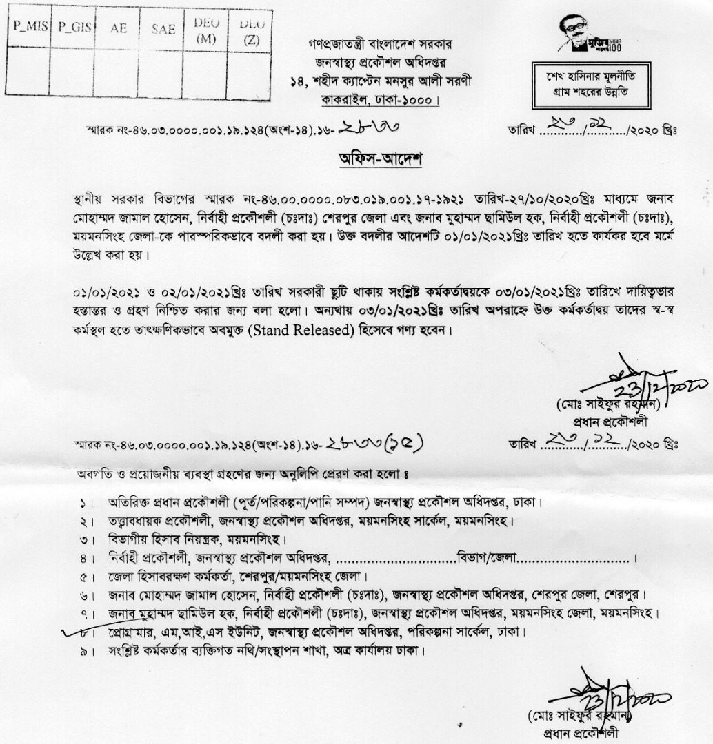 | ২৩/১২/২০২০ | বদলি সংক্রান্ত অফিস আদেশ, স্মারক নং-২৮৩৩ | ডাউনলোড |